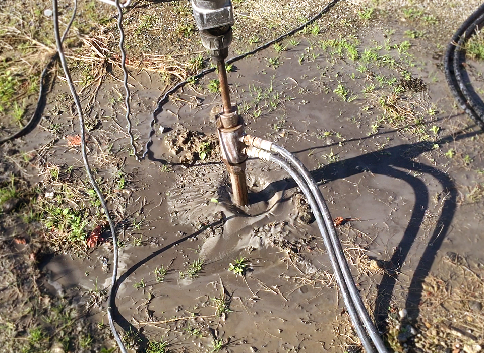ソリディ工法を用いて地盤が沈下して傾いてしまった建物を修正します。また、これから建物が新築される土地の地盤補強改良工事も行っています。